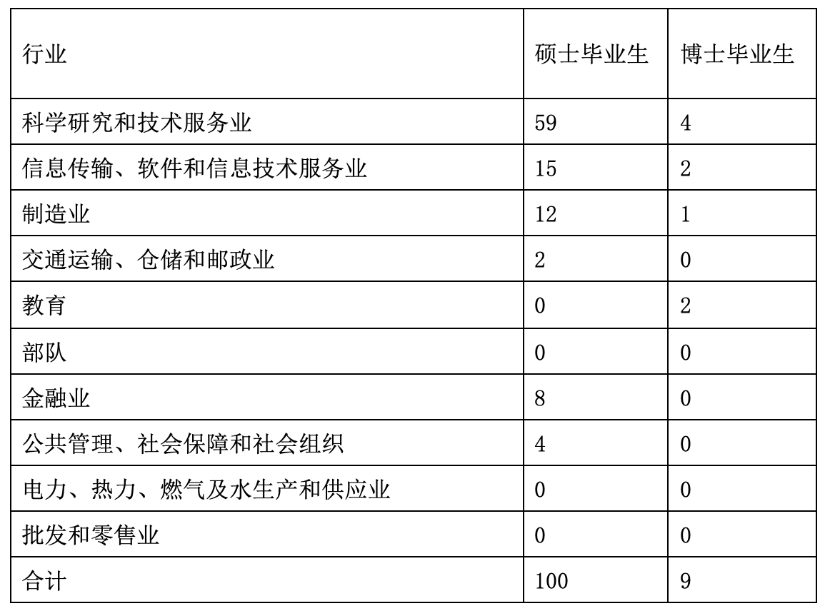 由上表可见,我院研究生毕业生就业的行业分布主要集中在科学研究和技术服务业。国防科技工业单位是我校毕业生的重要就业方向,每年参与就业的毕业生有近一半走进国防科技工业各条战线建功立业。